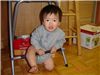 沒事做的弟弟, 躲在一旁鑽椅子.