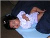 Felicia躺在客廳沙發上時, 會抬頭偷看電視.