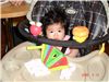 晚飯時間, 媽咪開始把Felicia放在High Chair中, 雖然還不能吃, 但可以先學習一下爸媽如何在桌上用餐的.