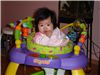 Felicia坐在她的彈彈椅裡吃起雞腿了, 先吃右手, 再吃左手...