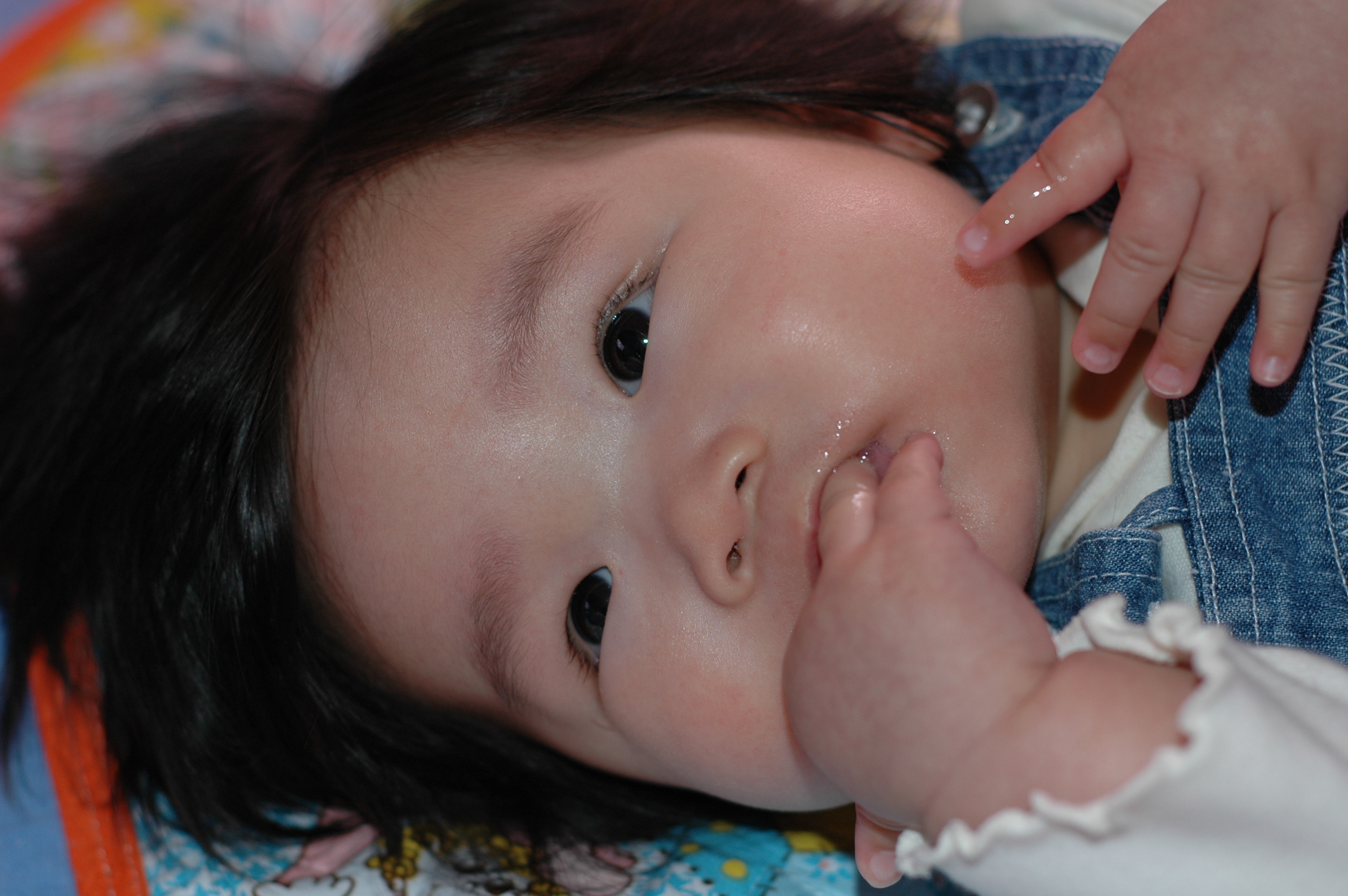 往上看著把拔的相機, 小楒庭的眼神滿漂亮的