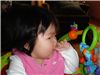 Mommy在後面拍照時, 不小心被Felicia發現了, 看看她不好意思的表情...