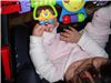 Felicia愈玩愈興奮, 玩到car seat晃的很厲害, 讓媽咪吃的很不放心, 一直盯著看.