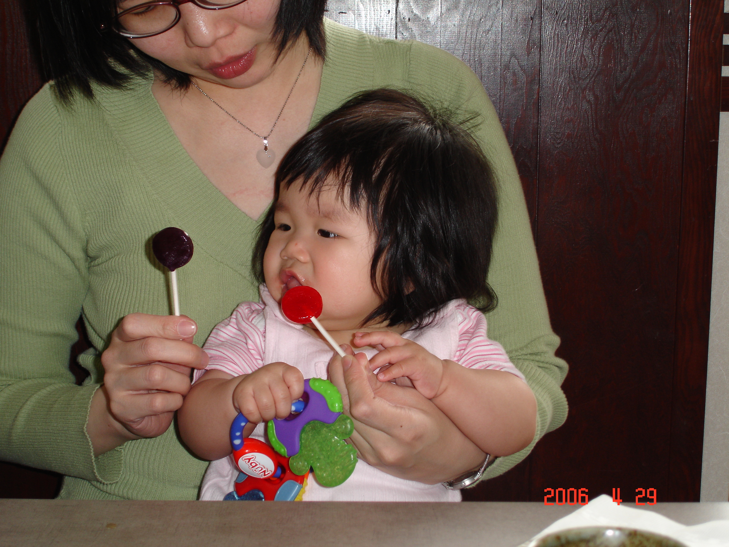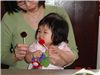 Felicia貪心的表情. 台語俗話說的「吃碗內看碗外」