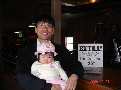 本來要幫Felicia印一張到此一遊的報紙, 不過今天印刷店老闆不在, 所以只能照相留念, 看來Felicia有點不滿意哦...