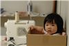 Felicia在媽咪的工作室裡玩, 為了怕她亂拿東西吃, 所以媽咪讓她坐在紙箱裡, Felicia玩的很開心呢