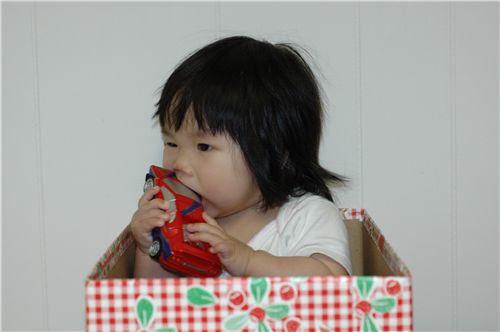 Felicia in the paper box and play with red car