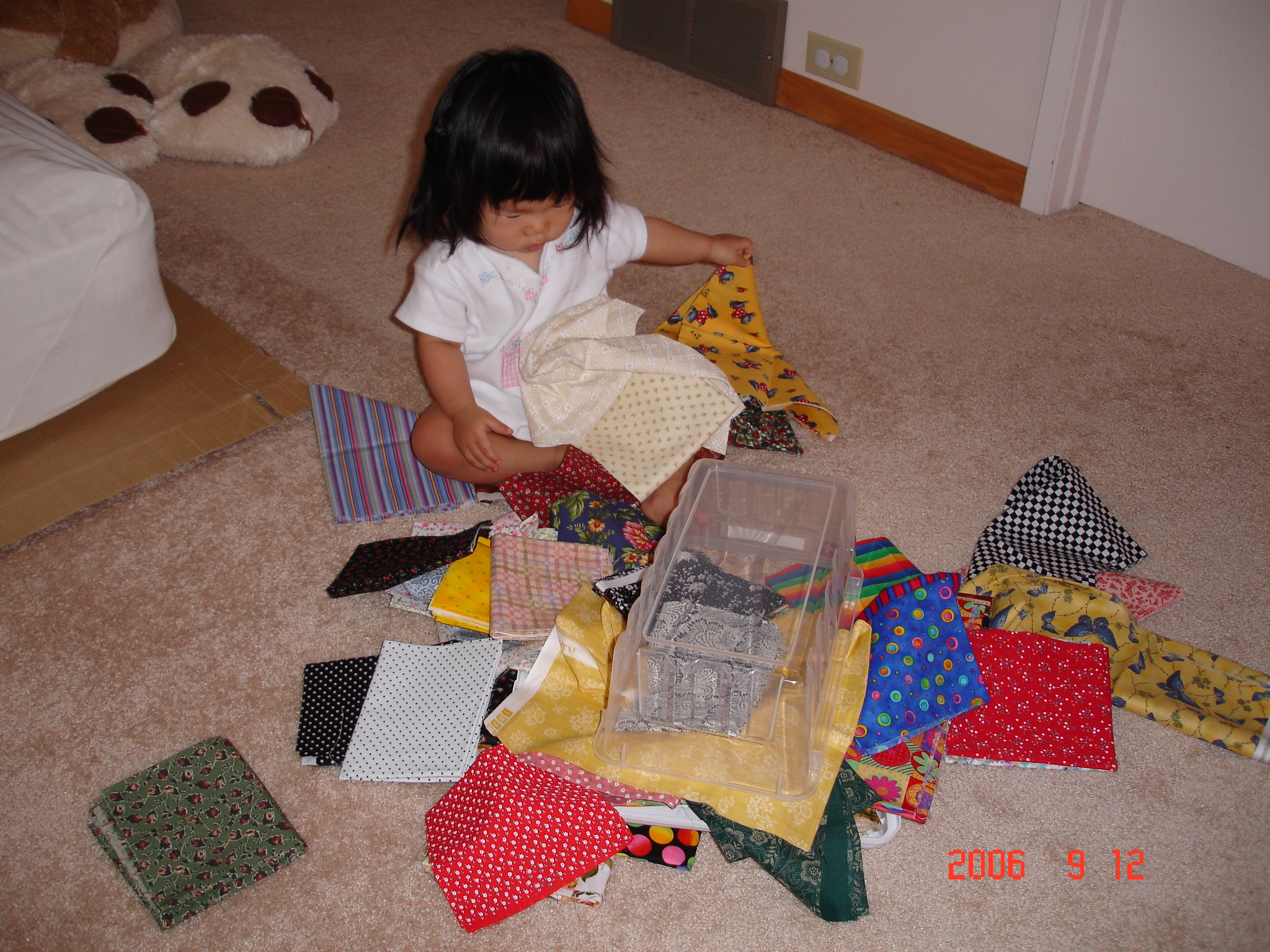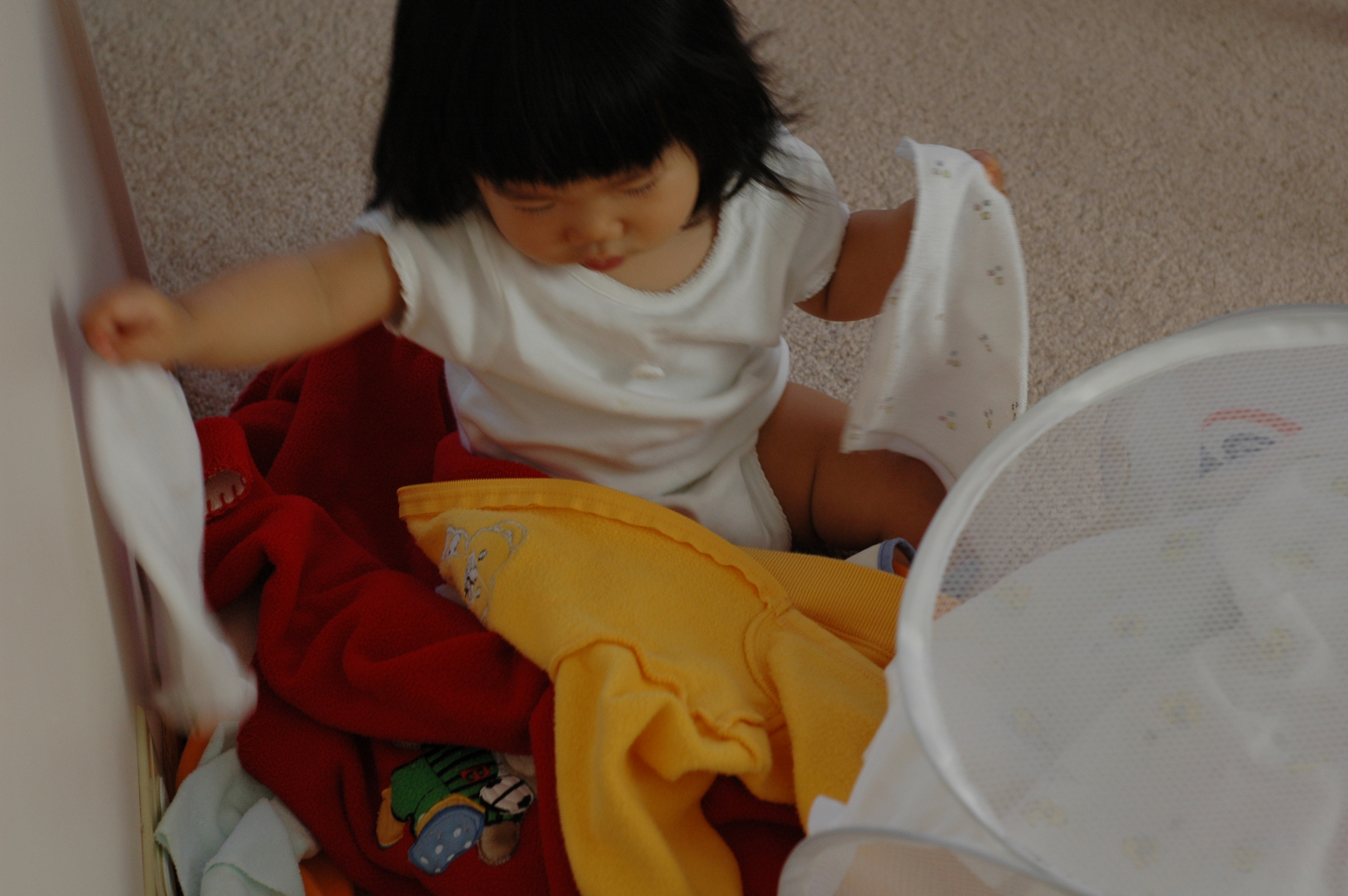 不管是換下來的髒衣服還是洗好未摺的衣服, 只要逮到機會, Felicia一定會把它們全部拖出來玩一玩.
