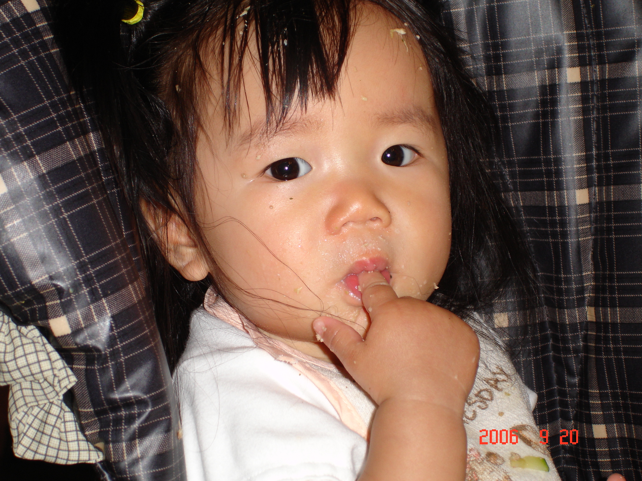 開始吃第二回合晚餐的Felicia, 肯讓媽咪用手幫忙餵牛肉
