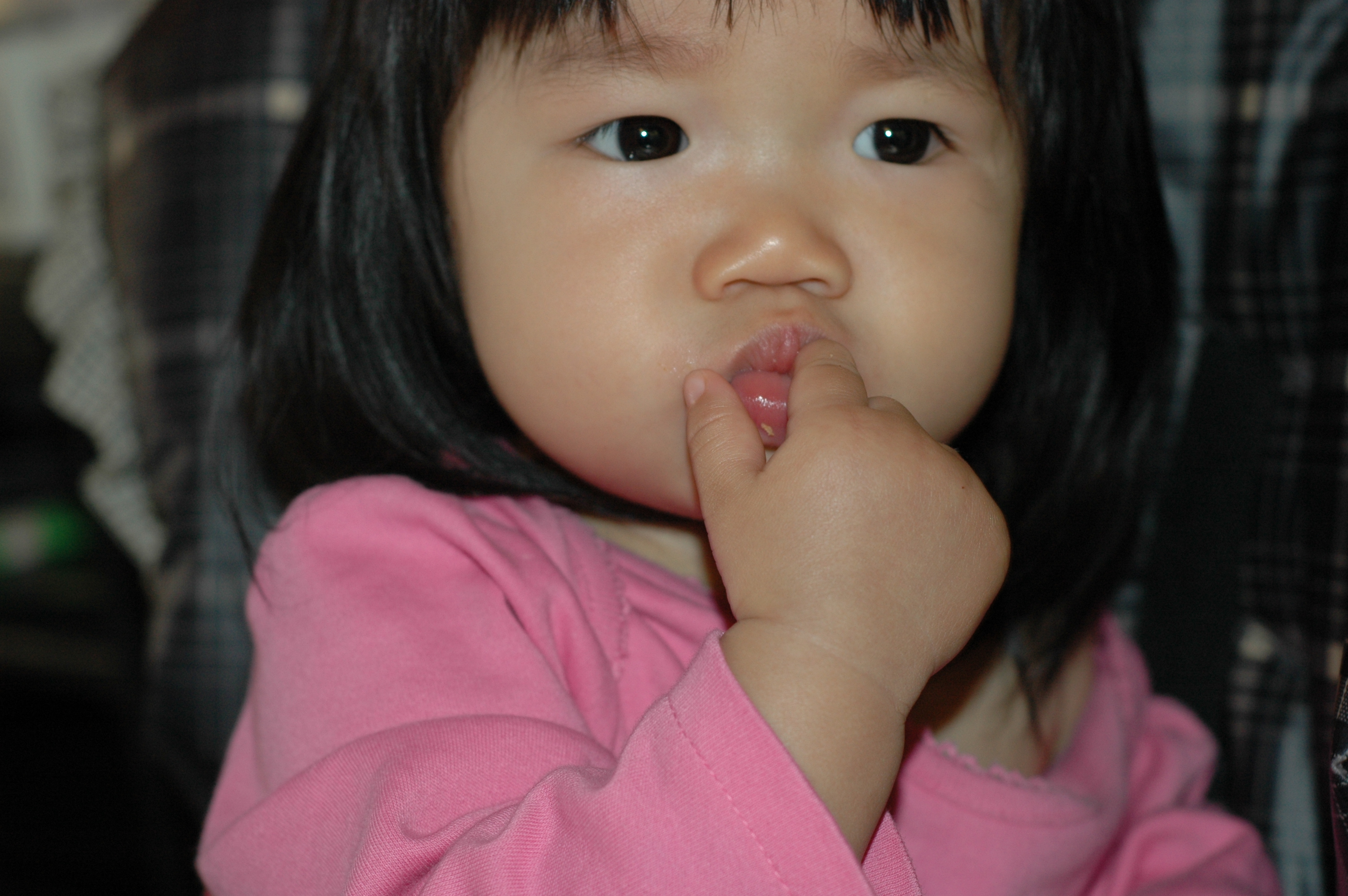 Felicia醒了以後, 又開始認真的吃起飯來了.