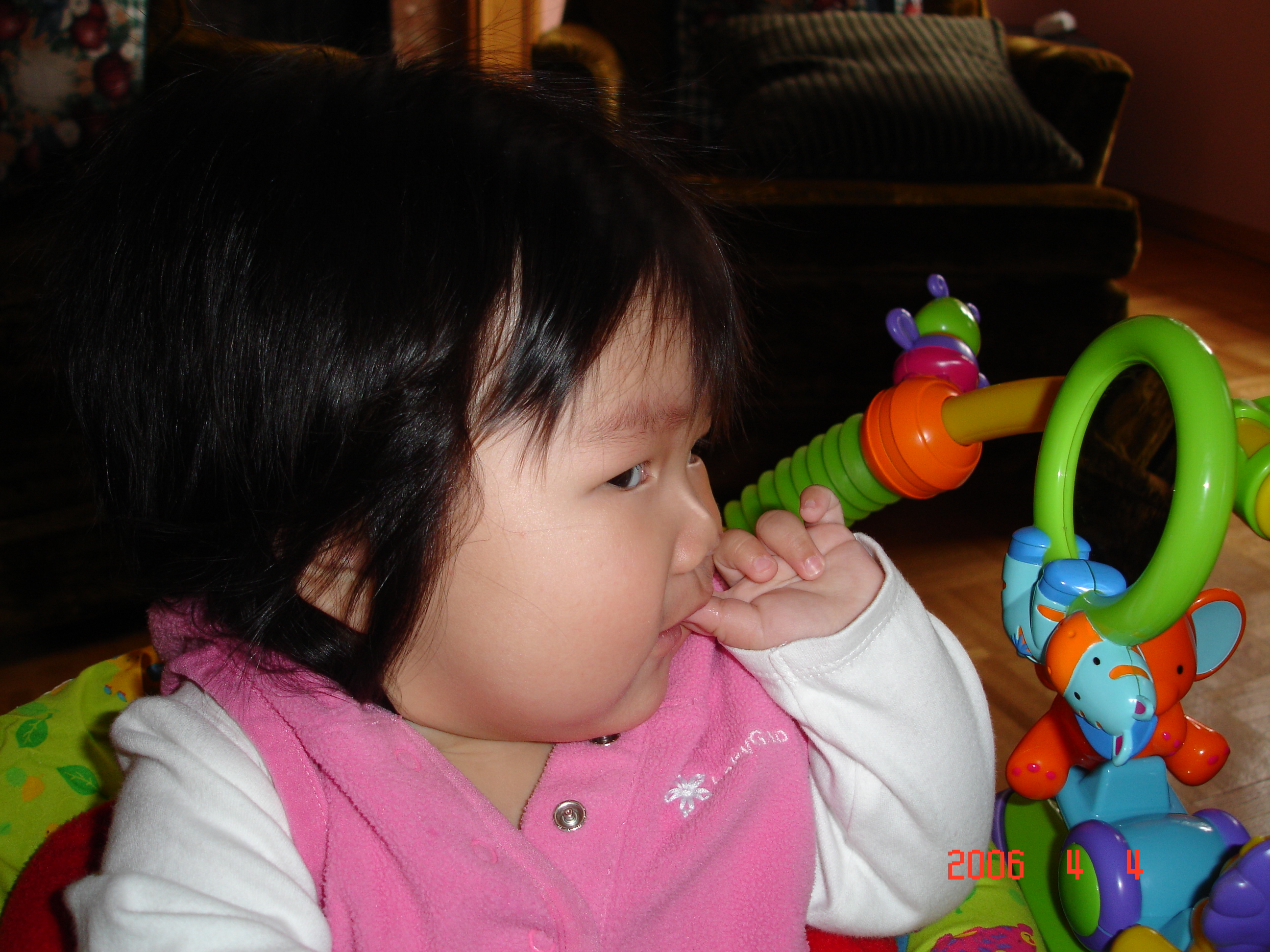 Felicia愈玩愈興奮, 玩到car seat晃的很厲害, 讓媽咪吃的很不放心, 一直盯著看.