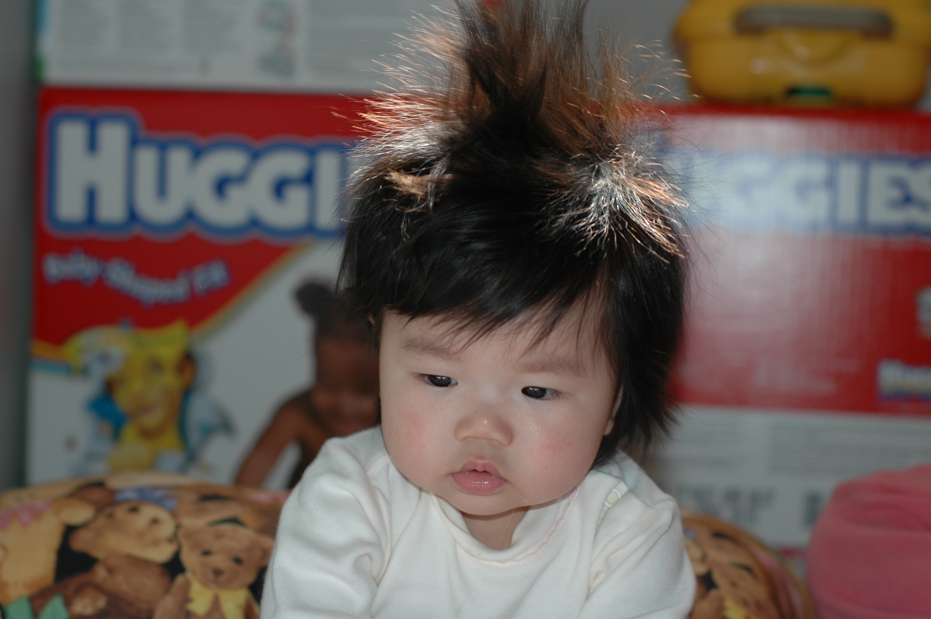 Felicia翹翹的頭髮, 像不像公雞的雞冠? 爸比說那是公雞頭...