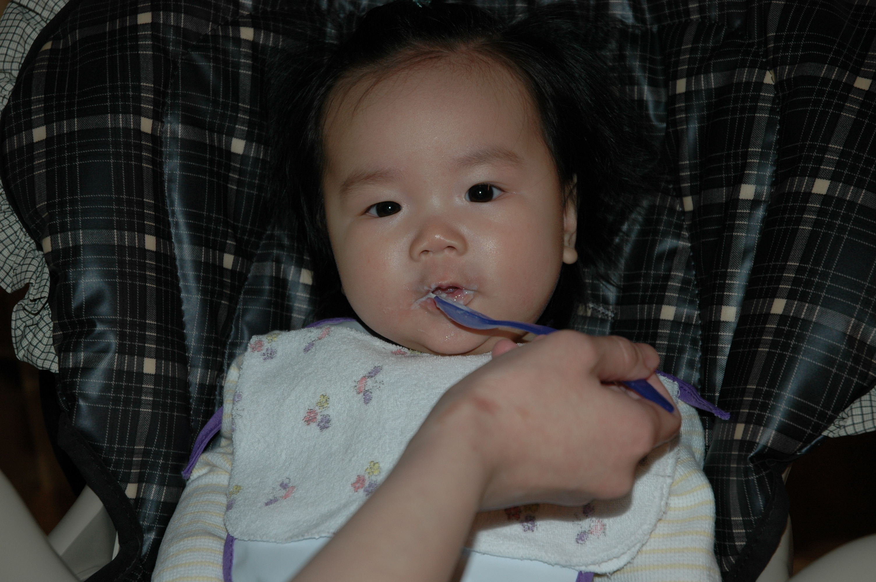 Felicia邊吃米麩邊手足舞蹈, 一副很快樂的樣子.