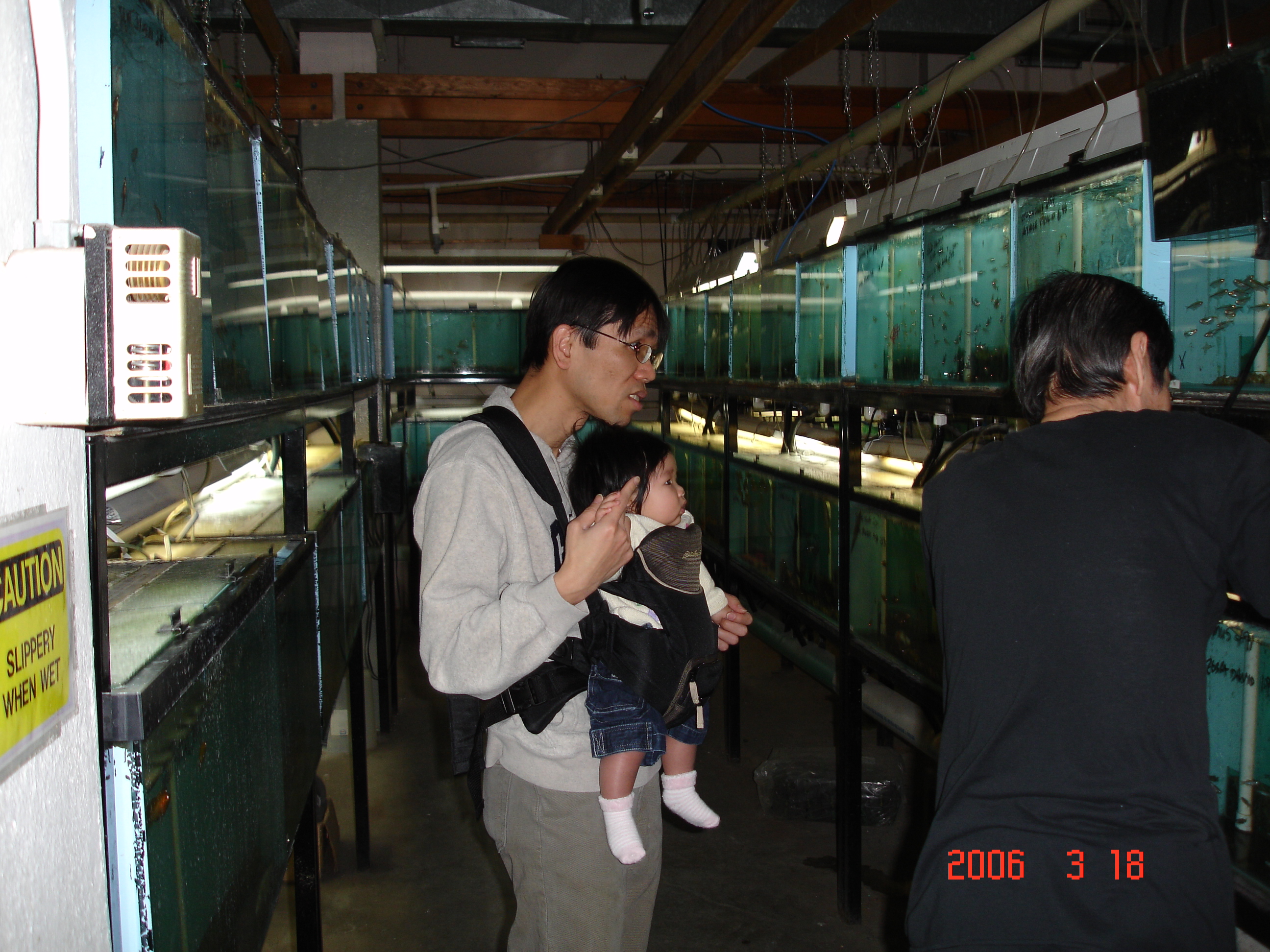 老闆幫我們抓魚, Felicia很認真的看著伯伯在抓魚哦.