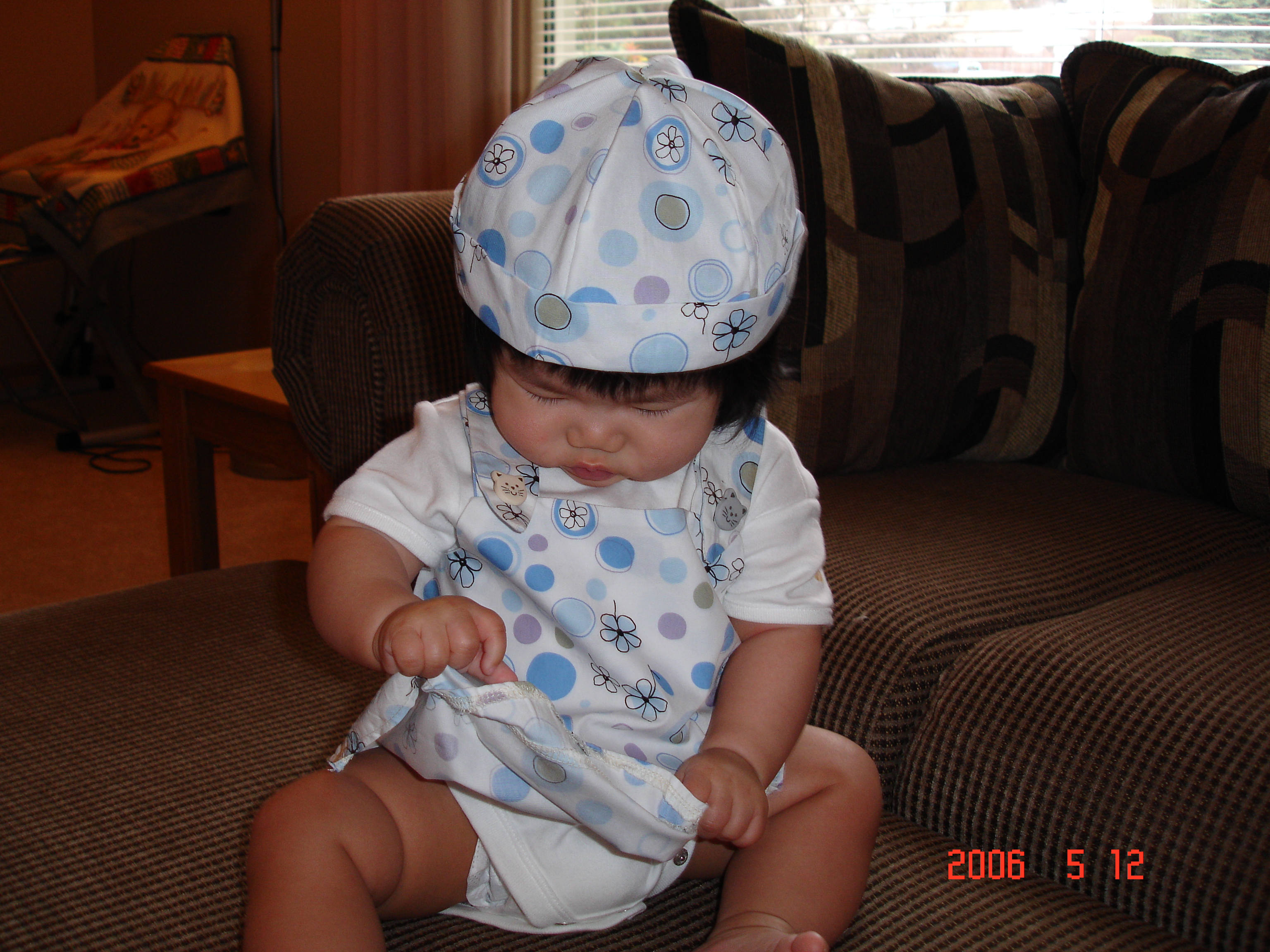 Felicia睡醒, 看到新衣服很高興的讓媽咪試穿.