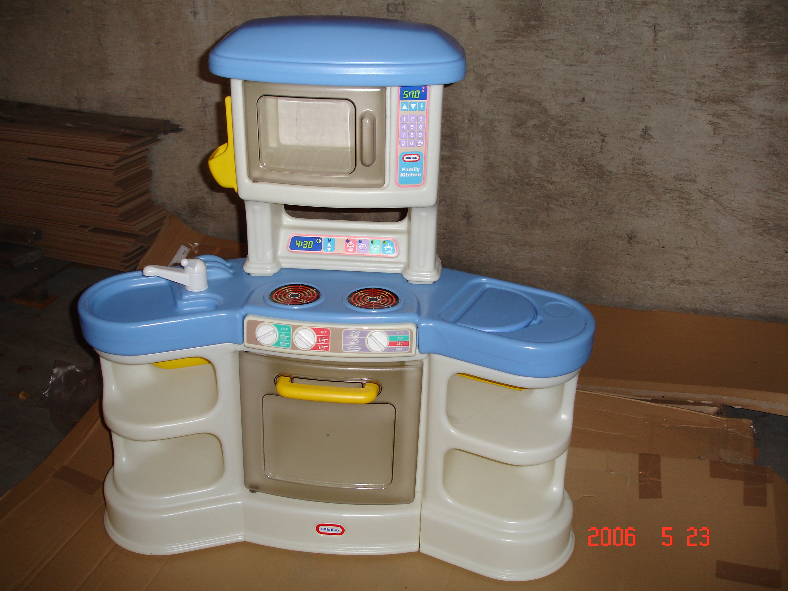Yu-Ping阿姨送的小廚房, 等Felicia會站了就可以玩了, 目前暫收在車庫.