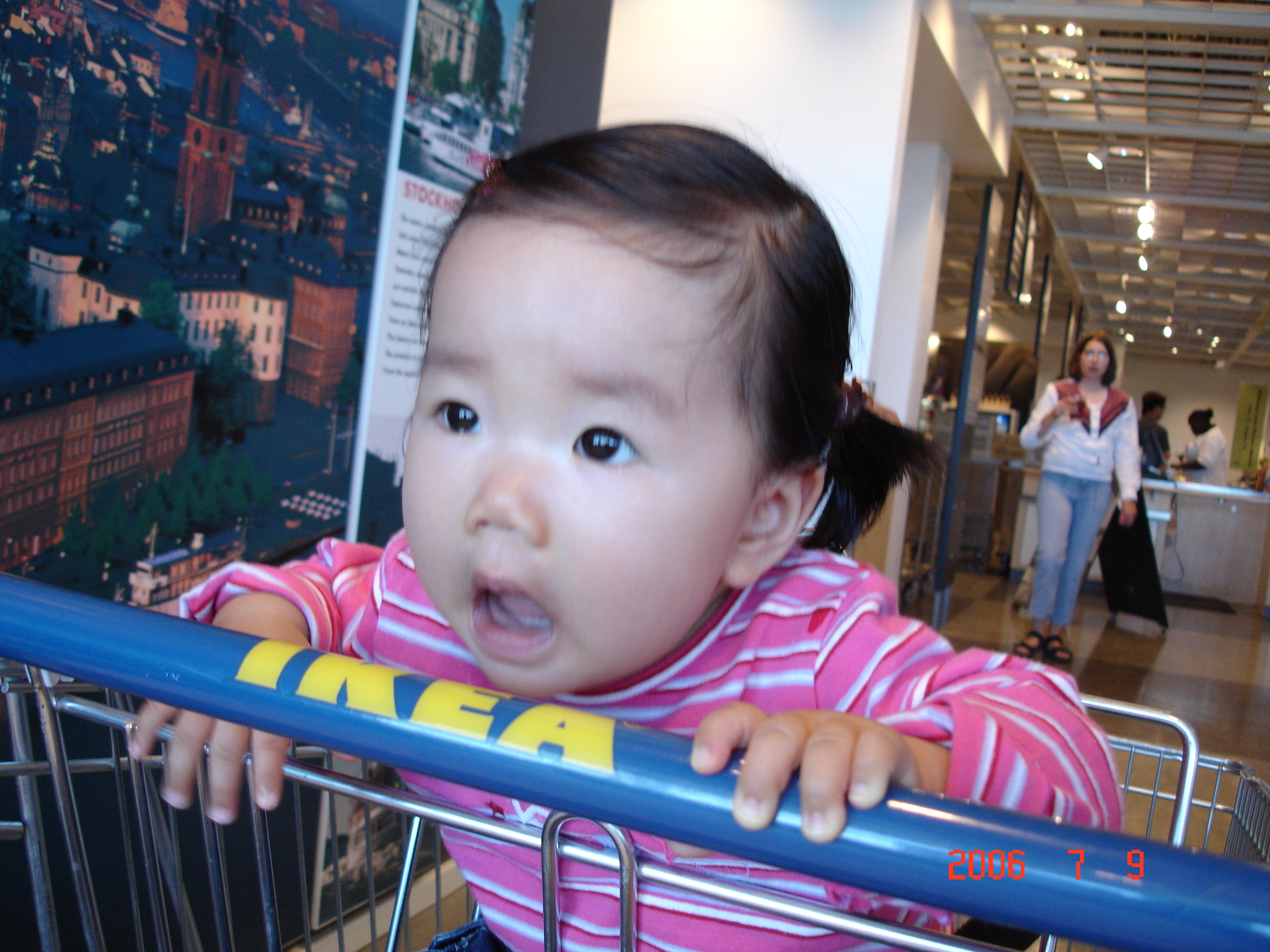 正午, 結束Stampede Park的探險後, 把拔決定帶Felicia去IKEA吹冷氣, 免得回到家太熱, 小姑娘睡不著又要發脾氣. 後來, Felicia果真在IKEA吹冷氣吹到睡著, 把拔才戴我們回家.