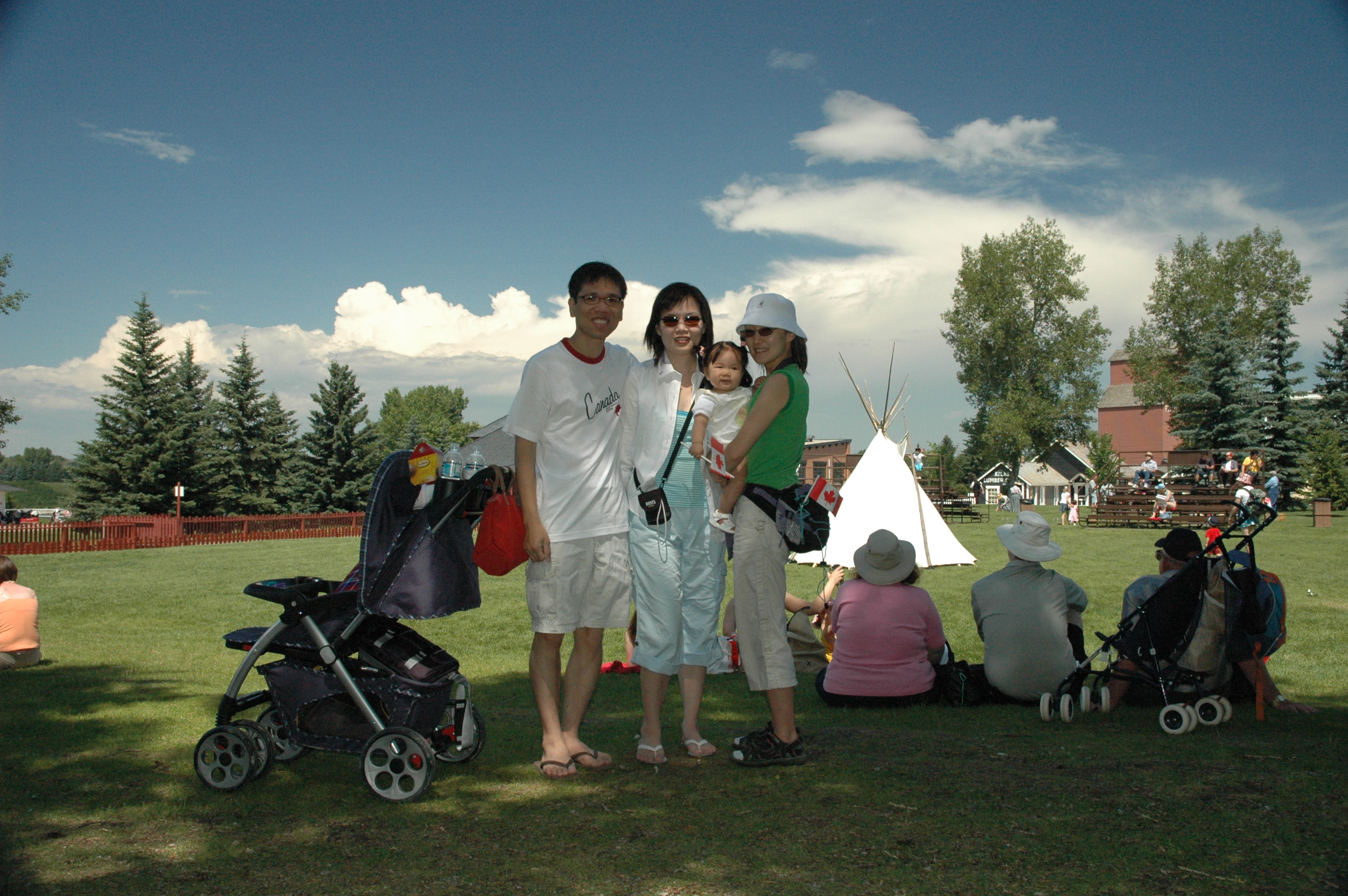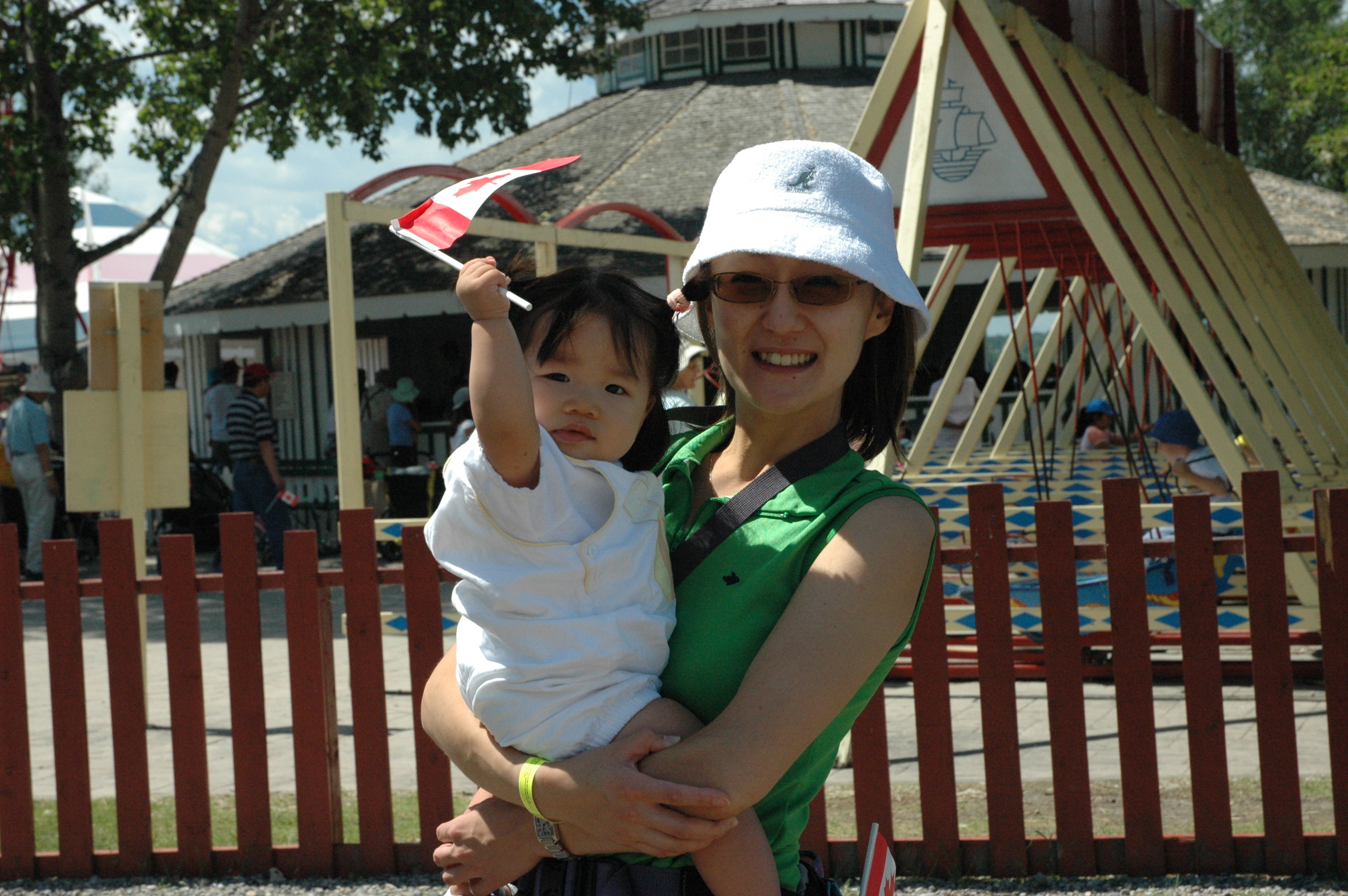今天是加拿大國慶日, 在Heritage Park門口, 到處有人在發國旗及別針, Felicia跟別的小朋友一樣, 揮國旗揮整路.