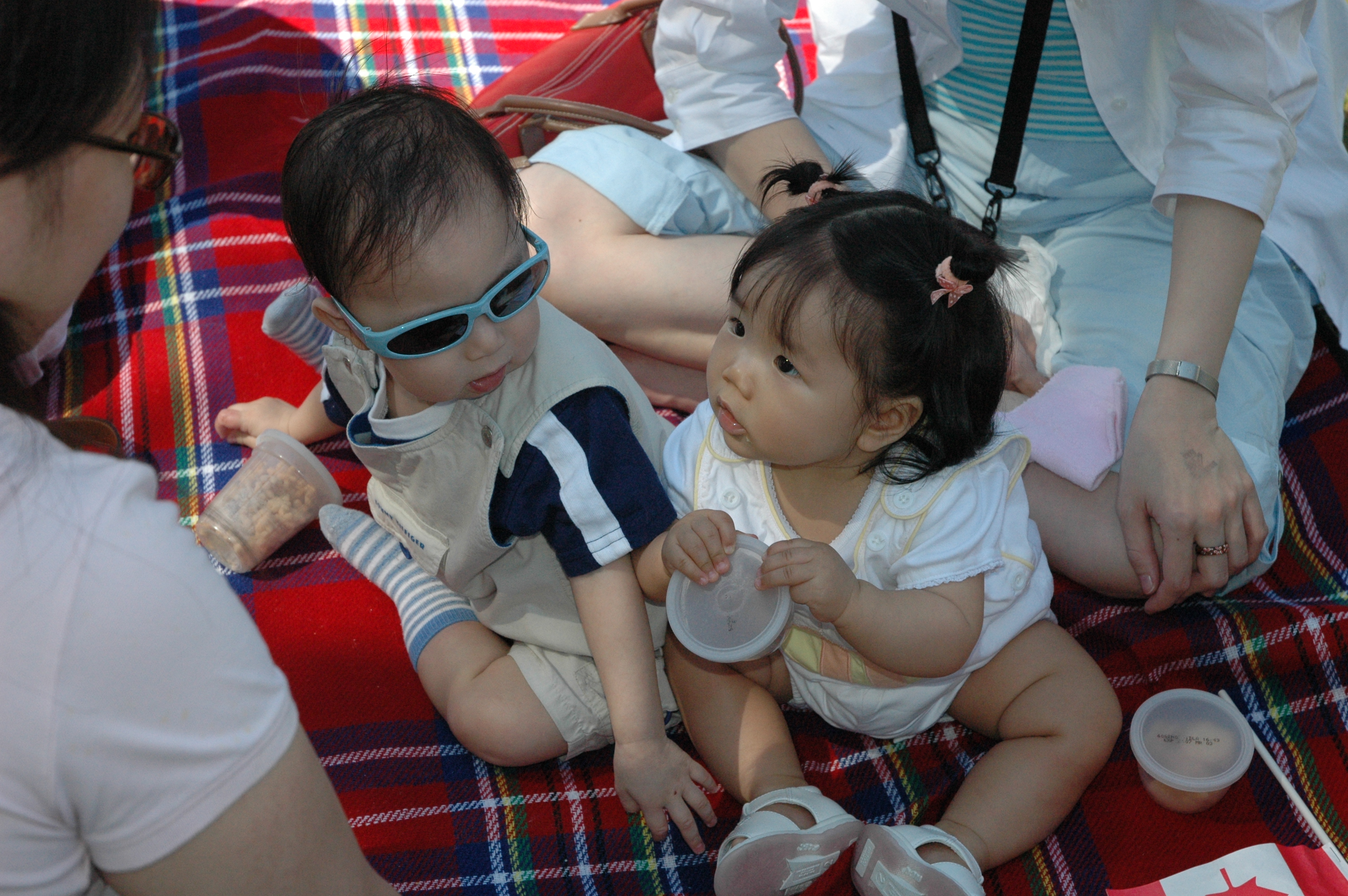 哇~ 媽咪發現, Felicia已經會搶Jonas哥哥的餅乾了.