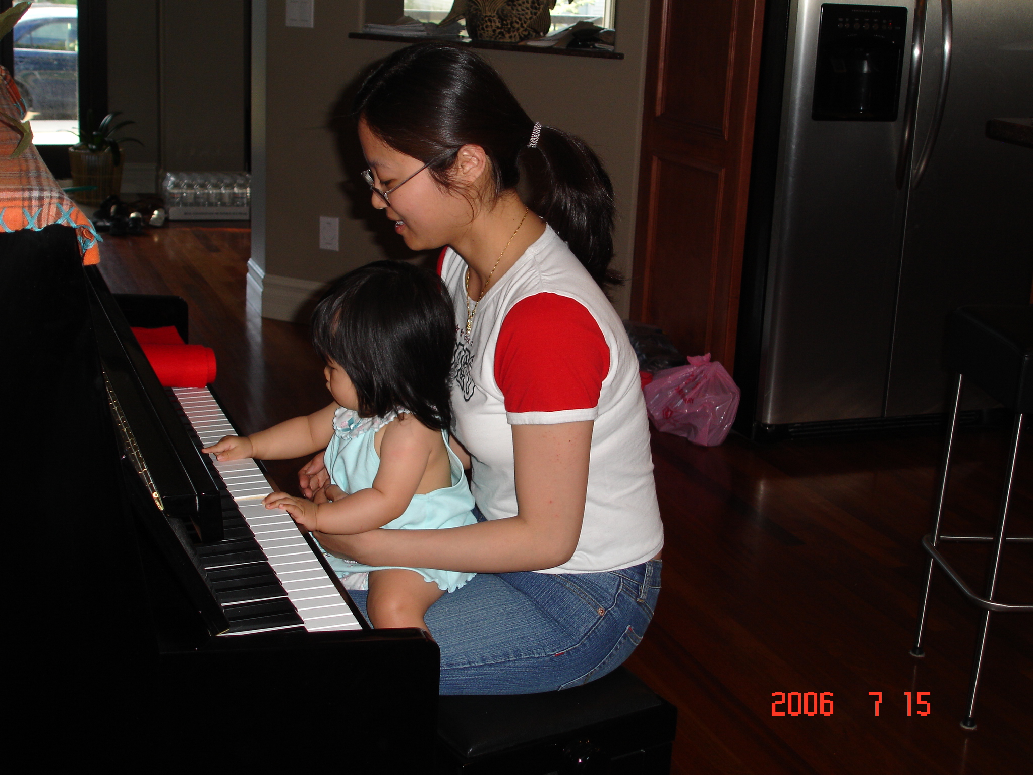 這是Felicia第一次去游泳池玩水, 先和把拔坐在池邊暖身一下.