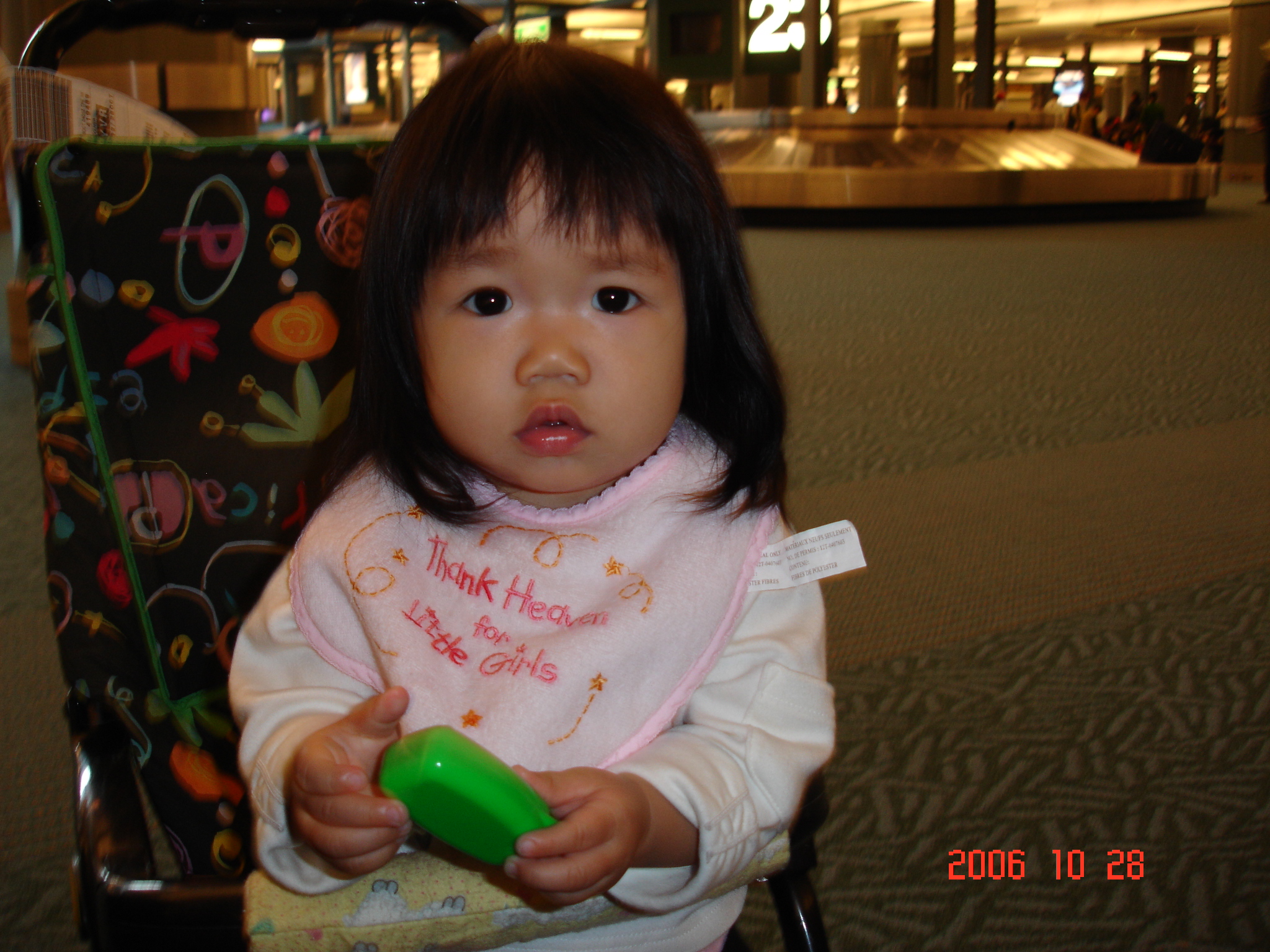 Felicia和媽咪在溫哥華機場等爺爺奶奶報到手續