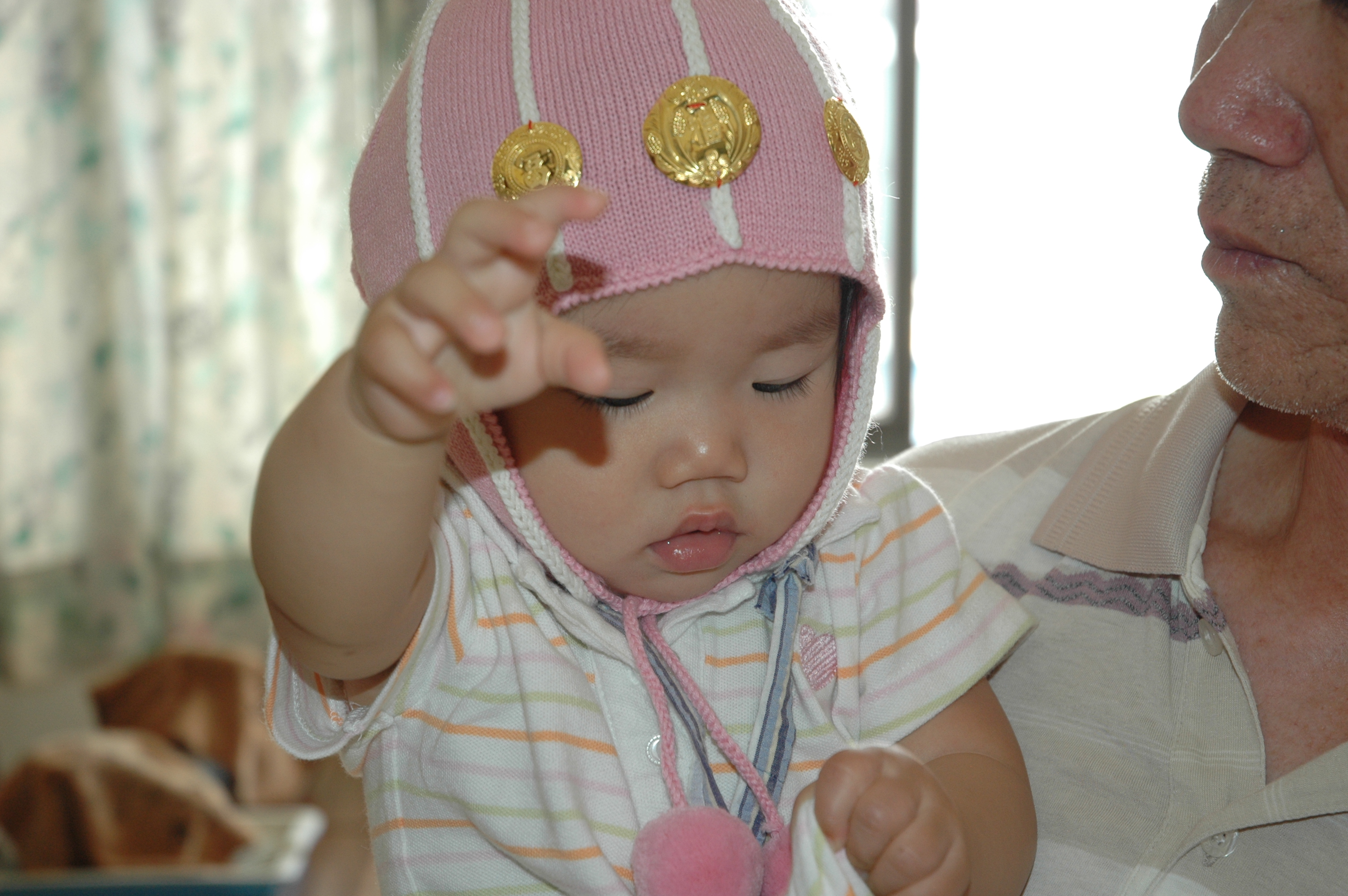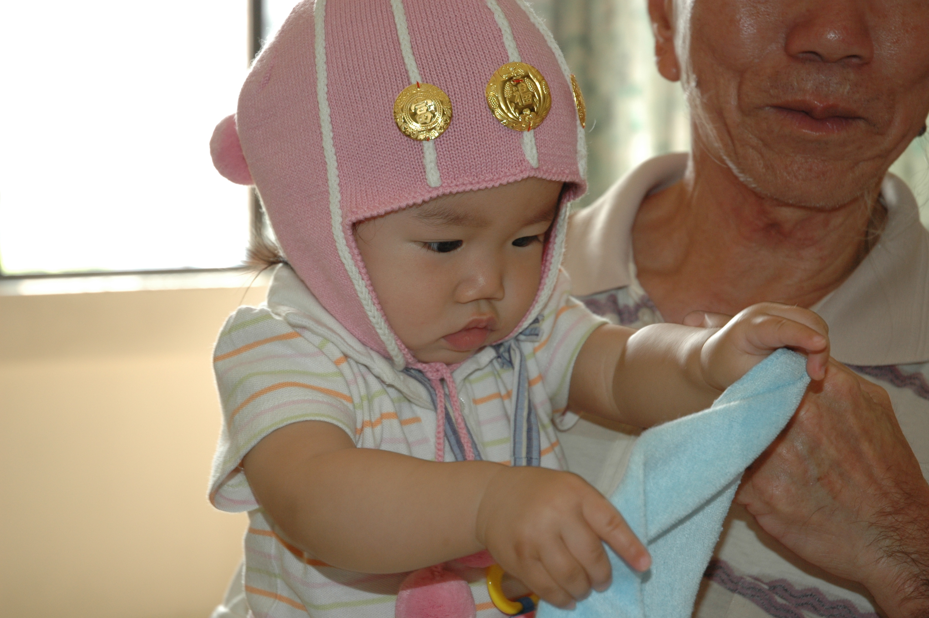 大舅媽等著要和Felicia照相, 可是數了好多的饅頭呢